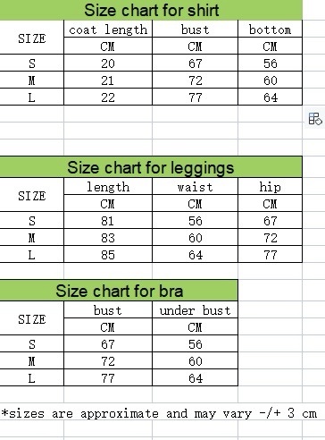 Includes: Sports Bra, Crop Top, Leggings